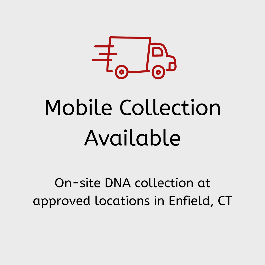 Witnessed sample collection with verified identification, strict chain-of-custody documentation from collection through laboratory processing, testing performed through AABB-accredited laboratories, court-ready reports, results typically available in 2-5 business days, and mobile collection available by appointment in Enfield, CT.