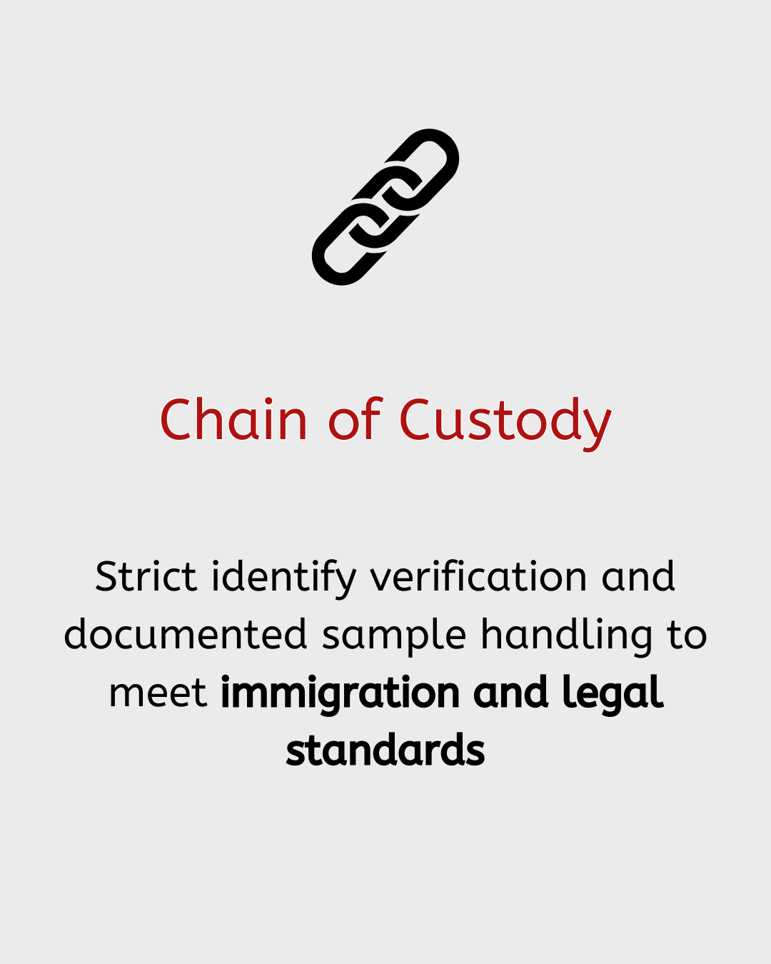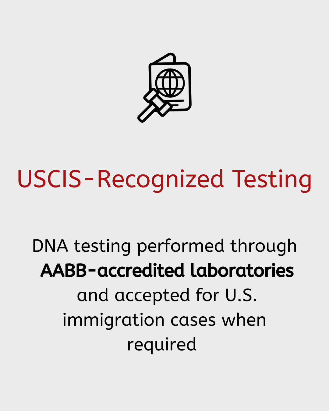Immigration DNA testing follows specific requirements. Our team with guide you through the process before scheduling.