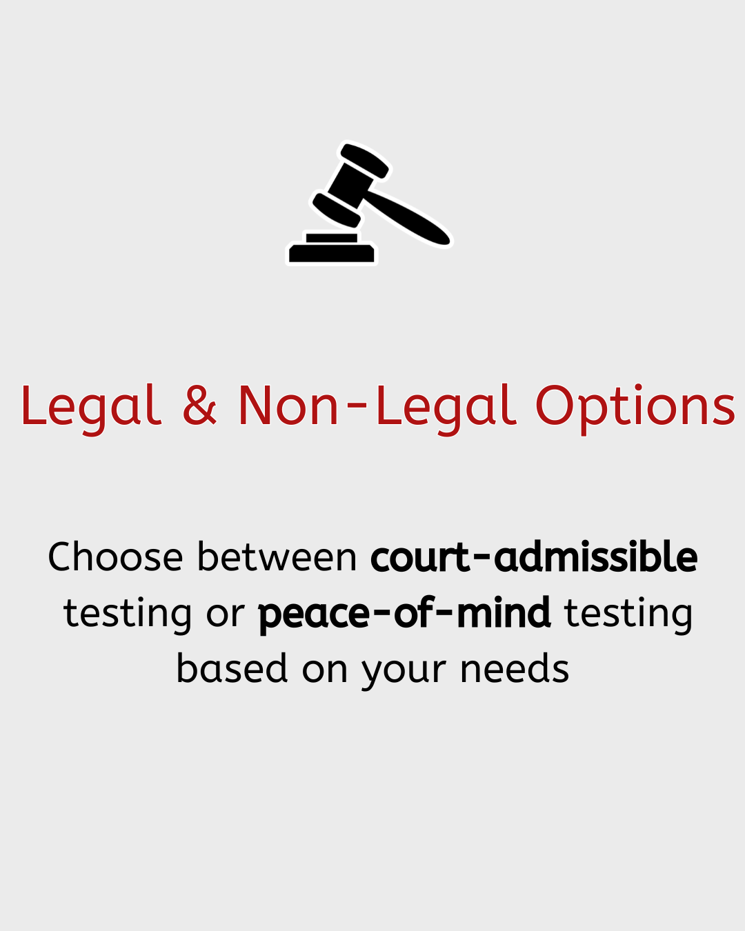 Legal DNA testing requires valid identification and documented chain of custody. Our team will confirm requirements before scheduling